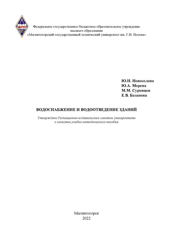 Авторы: Новоселова Ю. Н., Морева Ю. А., Суровцов М. М., Базанова Е. В. Заглавие: Водоснабжение и водоотведение зданий Учебное пособие В пособии рассмотрены теоретические основы проектирования и расчета систем водоснабжения и водоотведения. Приведены рекомендации по проектированию систем водоснабжения и водоотведения, рациональному подбору и компоновке необходимого оборудования. Пособие предназначено для студентов высших учебных заведений, обучающихся по профилям «Теплогазоснабжение и вентиляция», «Промышленное и гражданское строительство», «Инженерные системы гражданских и промышленных зданий», «Строительный инжиниринг» направления 08.03.01 «Строительство». Ссылка на полные выходные данные – URL: https://host.megaprolib.net/MP0109/Download/MObject/20203 библиографическое описание издания – Водоснабжение и водоотведение зданий : учебно-методическое пособие [для вузов] / Ю. Н. Новоселова, Ю. А. Морева, М. М. Суровцов, Е. В. Базанова ; Магнитогорский гос. технический ун-т им. Г. И. Носова. - Магнитогорск : МГТУ им. Г. И. Носова, 2022. - 1 CD-ROM. - Загл. с титул. экрана. - URL: https://host.megaprolib.net/MP0109/Download/MObject/20203. - ISBN 978-5-9967-2572-4 (дата обращения: 09.05.2024). - Текст : электронный. |