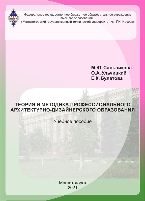 Автор: Сальникова М. Ю., Ульчицкий О. А., Булатова Е. К. Заглавие: Теория и методика профессионального архитектурно -дизайнерского образования Учебное пособие Учебное пособие " Теория и методика профессионального архитектурно-дизайнерского образования" раскрывает теоретический (лекционный) и практический курс по дисциплине: "Теория и методика профессионального архитектурно-дизайнерского образования", а также обеспечивает курсы дисциплин: "Учебная- ознакомительная практика", "Нормативно-правовые основы профессиональной деятельности, "Учебная- технологическая практика" по направлению 07.00.00 Архитектура. Ссылка на электронную версию – URL: https://host.megaprolib.net/MP0109/Download/MObject/3091 библиографическое описание издания – Сальникова М. Ю. Теория и методика профессионального архитектурно-дизайнерского образования : учебное пособие [для вузов] / М. Ю. Сальникова, О. А. Ульчицкий, Е. К. Булатова ; Магнитогорский гос. технический ун-т им. Г. И. Носова. - Магнитогорск : МГТУ им. Г. И. Носова, 2021. - 1 CD-ROM. - Загл. с титул. экрана. - URL: https://host.megaprolib.net/MP0109/Download/MObject/3091. - ISBN 978-5-9967-2184-9. - Текст : электронный. |
