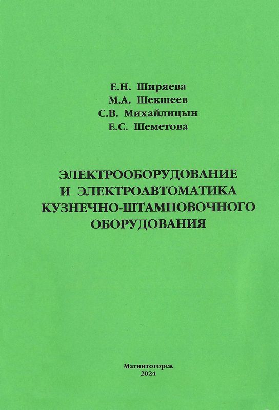 Автор: Ширяева Е. Н., Шекшеев М. А., Михайлицын С. В. Заглавие: Электрооборудование и электроавтоматика кузнечно-штамповочного оборудования Учебное пособие Пособие знакомит с основами и принципами построения электрических схем, дает информацию по механическим характеристикам электродвигателей и производственных механизмов. Предназначено для обучающихся по направлениям 15.03.01 "Машиностроение" и 15.04.01 "Машиностроение", изучающих соответствующие дисциплины, а также при выполнении курсовых проектов и выпускных квалификационных работ. библиографическое описание издания – Электрооборудование и электроавтоматика кузнечно-штамповочного оборудования : учебное пособие [для вузов] / Е. Н. Ширяева, М. А. Шекшеев, С. В. Михайлицын, Е. С. Шеметова ; Магнитогорский государственный технический университет им. Г. И. Носова. - Магнитогорск : МГТУ им. Г. И. Носова, 2024. - 45 с. : ил. - Библиогр.: с. 45. - ISBN 978-5-9967-3079-7. - Текст : непосредственный. Издание находится на абонемента учебной и научно-технической литературы, Ленина, 38, ауд. 142/2 |