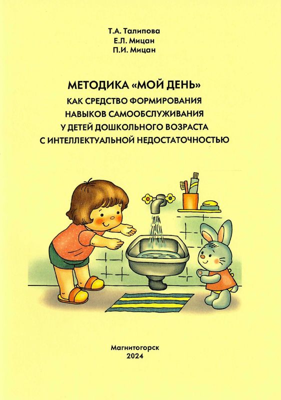 библиографическое описание издания – Талипова Т. А. Методика "Мой день" как средство формирования навыков самообслуживания у детей дошкольного возраста с интеллектуальной недостаточностью : учебно-методическое пособие / Т. А. Талипова, Е. Л. Мицан ; Магнитогорский государственный технический университет им. Г. И. Носова. - Магнитогорск : МГТУ им. Г. И. Носова, 2024. - 50 с. - ISBN 978-5-9967-3113-8. - Текст : непосредственный.