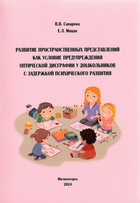 библиографическое описание издания – Сапарова В. В. Развитие пространственных представлений как условие предупреждения оптической дисграфии у школьников с задержкой психического развития: учебно-методическое пособие/ В. В. Сапарова, Е. Л. Мицан ; Магнитогорский государственный технический университет им. Г. И. Носова. - Магнитогорск : МГТУ им. Г. И. Носова, 2024. - 59 с. - ISBN 978-5-9967-3111-4. - Текст : непосредственный.