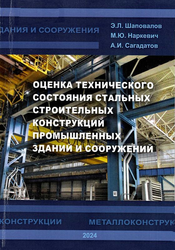 библиографическое описание издания – Шаповалов Э. Л. Оценка технического состояния стальных строительных конструкций промышленных зданий и сооружений : учебное пособие [для вузов] / Э. Л. Шаповалов, М. Ю. Наркевич, А. И. Сагадатов ; Магнитогорский государственный технический университет им. Г. И. Носова. - Магнитогорск : МГТУ им. Г. И. Носова, 2024. - 90 с. : ил., табл., схемы. - Библиогр.: с. 87-89. - ISBN 978-5-9967-3118-3. - Текст : непосредственный.