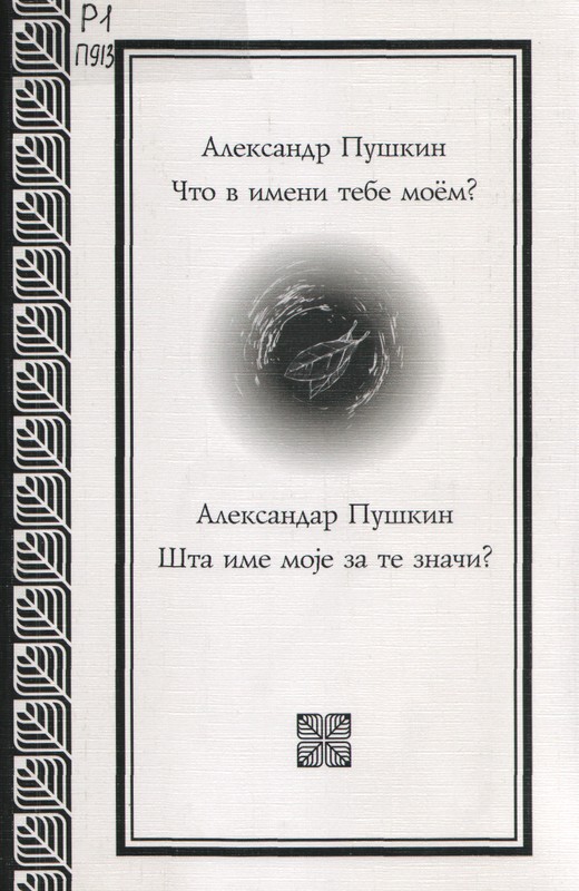 Автор: Александр Пушкин Заглавие: Что в имени тебе моём? Александр Сергеевич Пушкин (1799 — 1836) — поэт, драматург, прозаик; родоначальник новой русской словесности. Наследие Пушкина — эталон человечности, стремления к истине и красоте. О чём бы он ни писал - даже о самых тяжких, неразрешимых вопросах, — всё возрождает душу, направляя к добру, утверждая гармонию. Воздействие Пушкина на отечественную, на всю славянскую литературу и на самый уклад нашей жизни - громадно и неоспоримо, чему не помехой даже культ, принимающий подчас гротескные формы. Небытие словно отступает перед величием светлого гения. Ссылка на полные выходные данные – библиографическое описание издания – http://192.168.20.6/marcweb2/Default.asp Издание находится на абонементе экономико-правовой, гуманитарной и художественной литературы, УК№1, пр. Ленина, 38, ауд. 1105. |