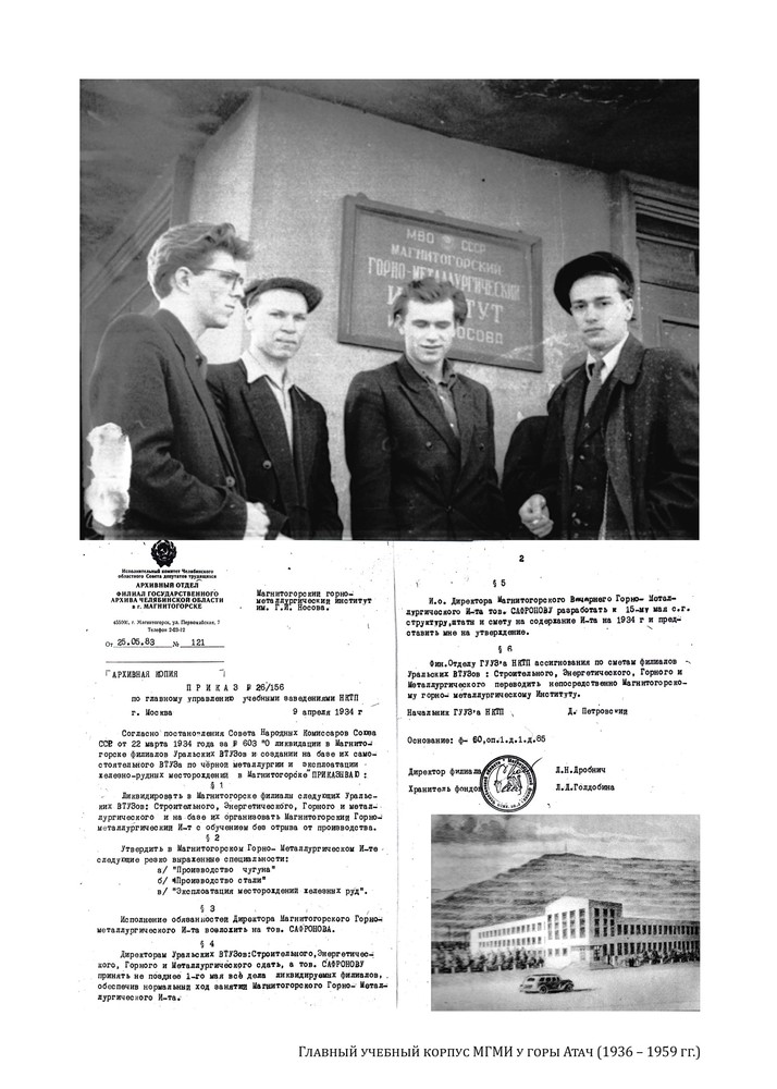 Строительство г. Магнитогорска и Магнитогорского металлургического комбината – грандиозная задача светского правительства: первенец пятилетки, металлургический гигант, первый социалистический город. Для решения поставленных задач требовались люди, образованные кадры. Одной из кузниц кадров, способных не только повлиять на уровень грамотности и образования рабочих и будущих горожан, но и подготовить педагогов для дальнейшего обучения и ликвидации безграмотности становится вечерний Индустриально-педагогический институт. Учебное заведение было организовано по решению Народного комиссариата просвещения РСФСР 1 октября 1932 г. На момент образования Челябинской области (1934 г.) магнитогорский институт был единственным очагом высшего педагогического образования.